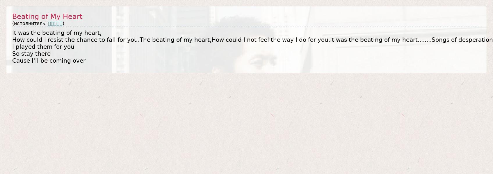 А как ты думаешь, о чем песня "Beating of My Heart" ?