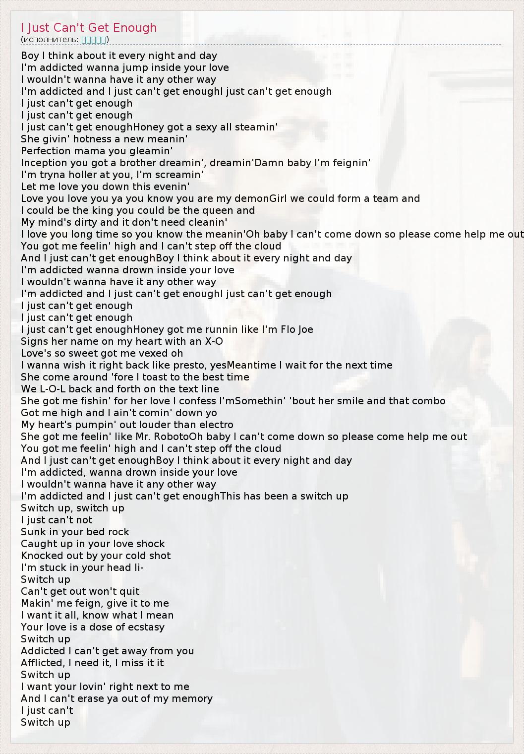А как ты думаешь, о чем песня "I Just Can't Get Enough" ?