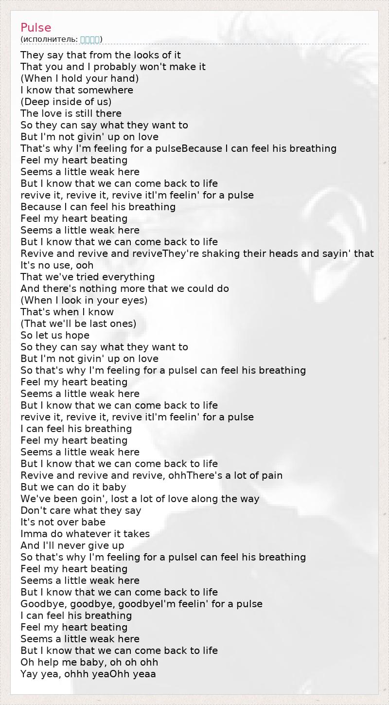That's why I'm feeling for a pulseBecause I can feel his breathing