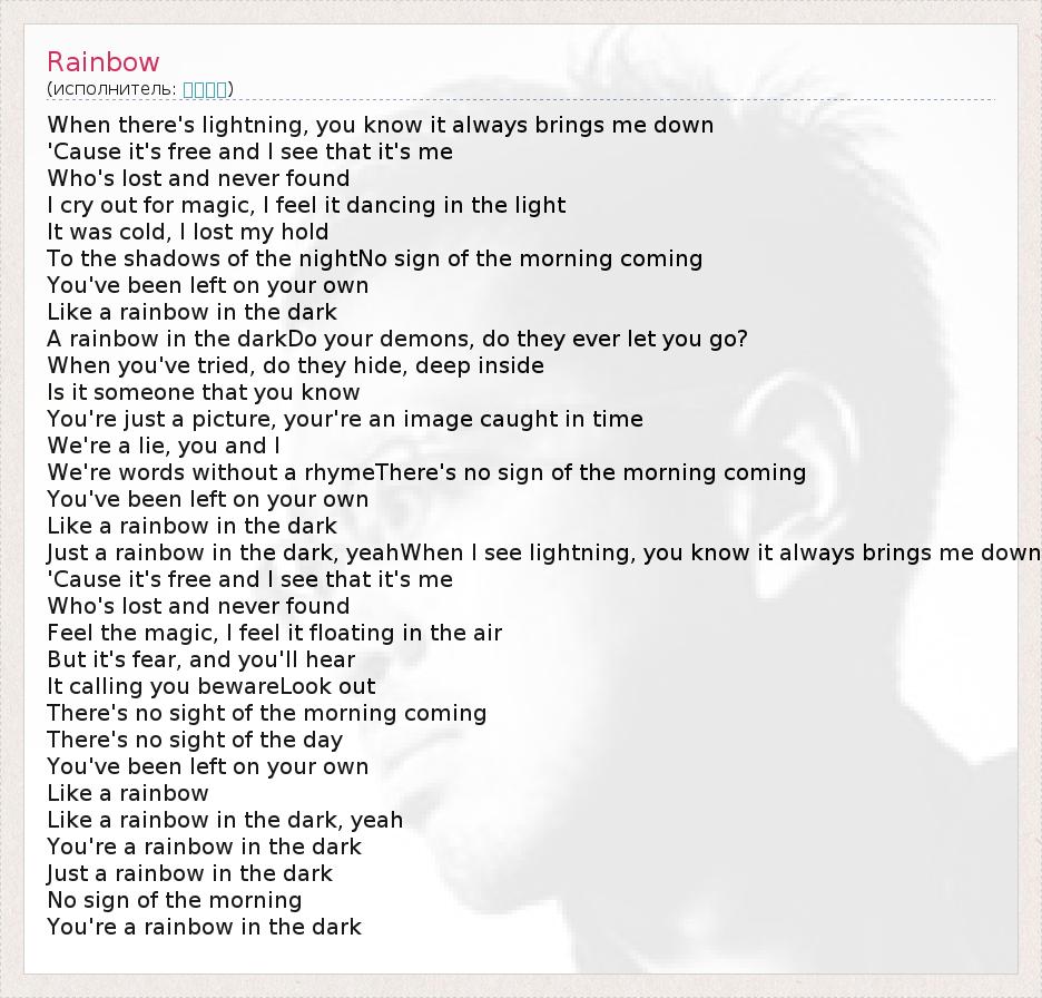 Just a rainbow in the dark, yeahWhen I see lightning, you know it always brings me down