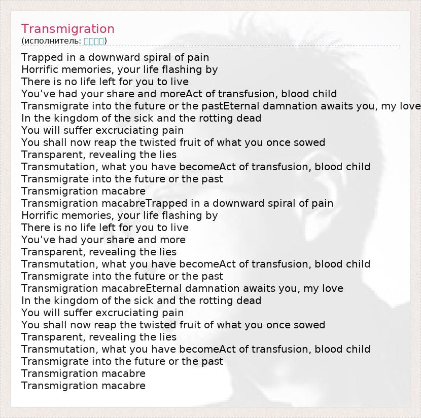 Transmigrate into the future or the pastEternal damnation awaits you, my love