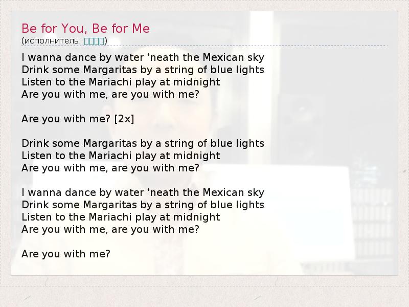 А как ты думаешь, о чем песня "Be for You, Be for Me" ?