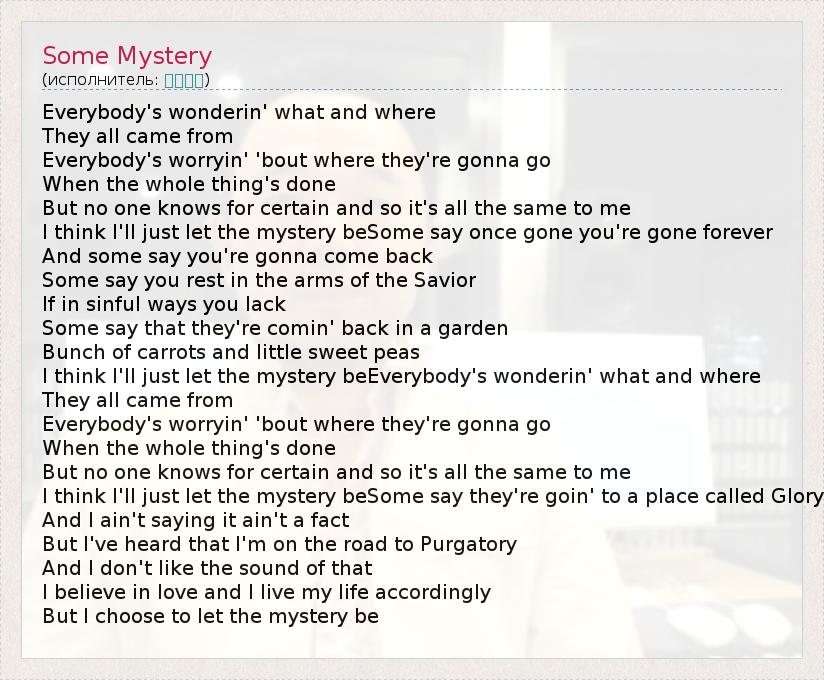 А как ты думаешь, о чем песня "Some Mystery" ?