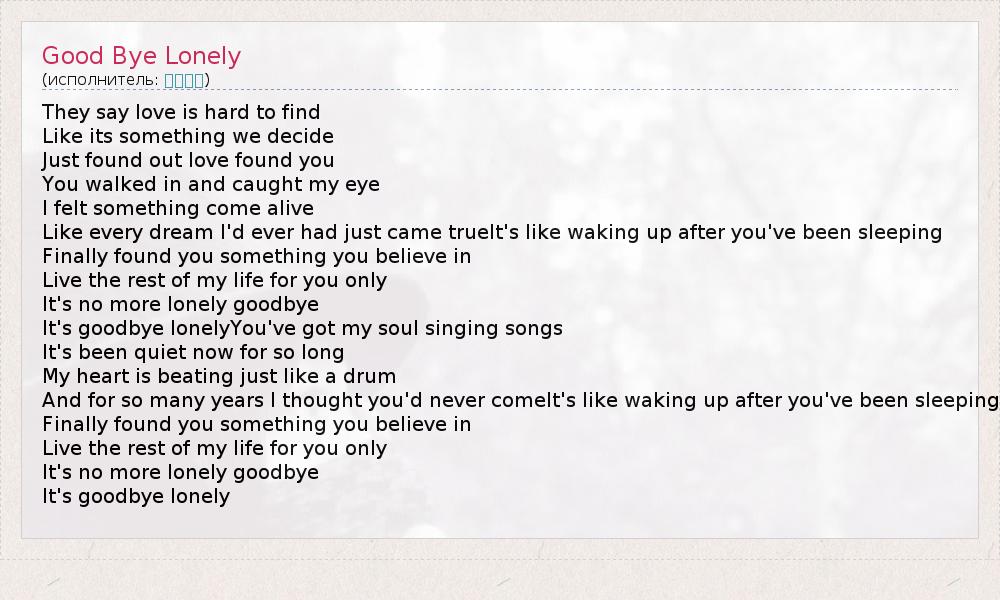 А как ты думаешь, о чем песня "Good Bye Lonely" ?