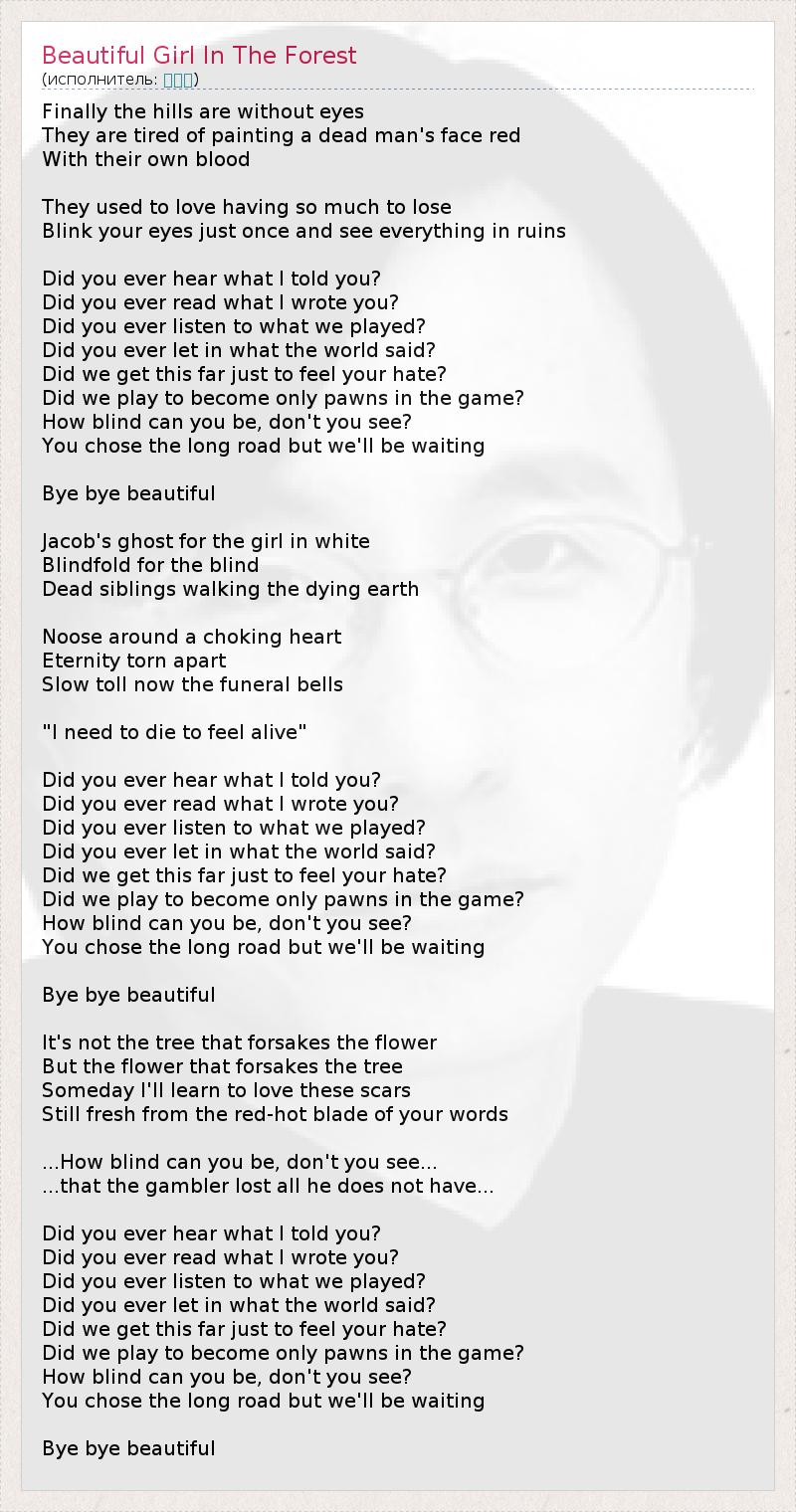 А как ты думаешь, о чем песня "Beautiful Girl In The Forest" ?