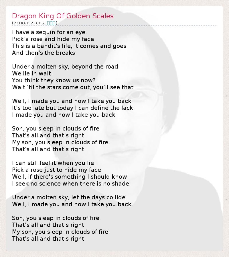 А как ты думаешь, о чем песня "Dragon King Of Golden Scales" ?