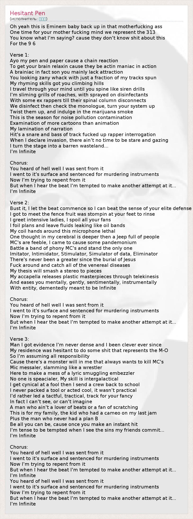 А как ты думаешь, о чем песня "Hesitant Pen" ?