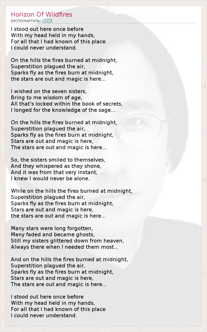 А как ты думаешь, о чем песня "Horizon Of Wildfires" ?