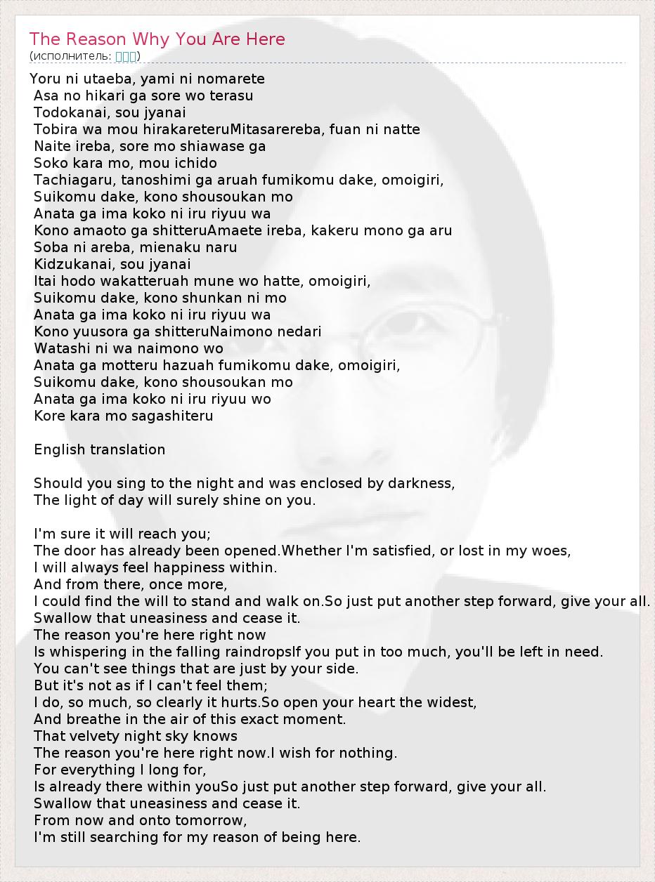 А как ты думаешь, о чем песня "The Reason Why You Are Here" ?