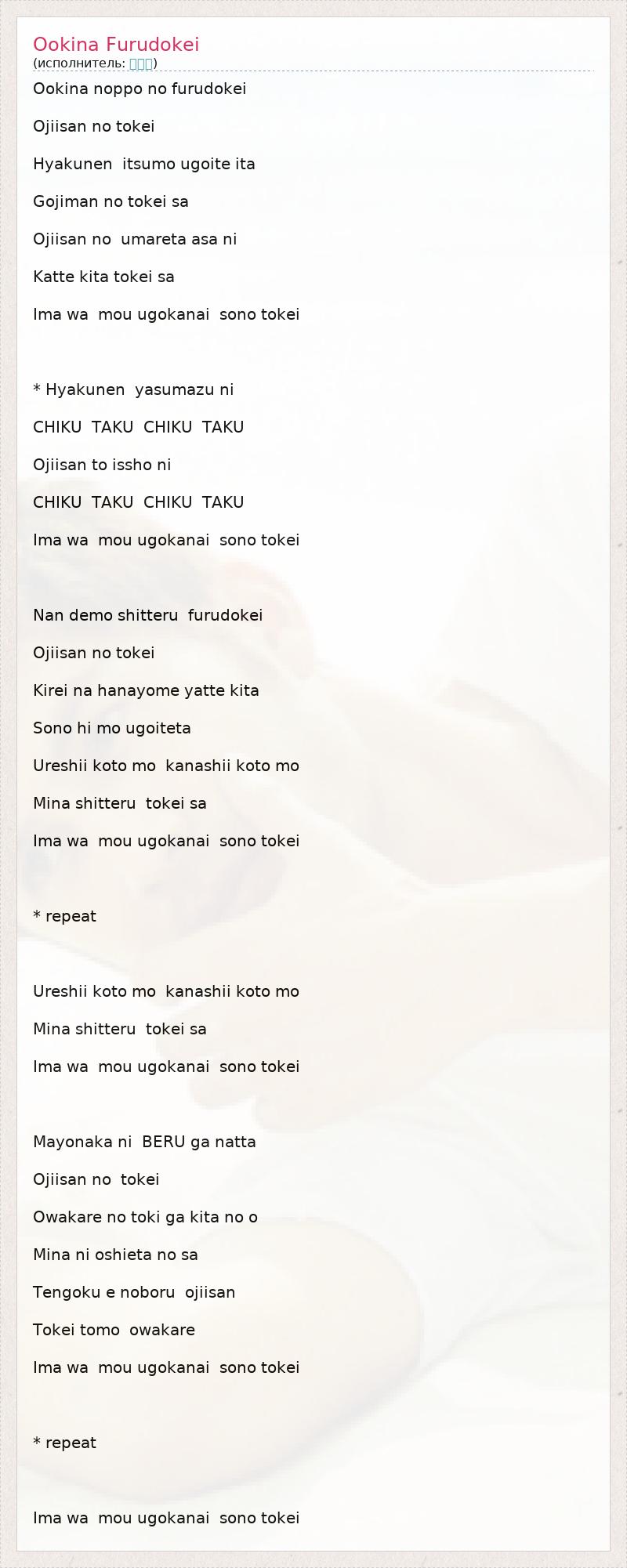 А как ты думаешь, о чем песня "Ookina Furudokei" ?