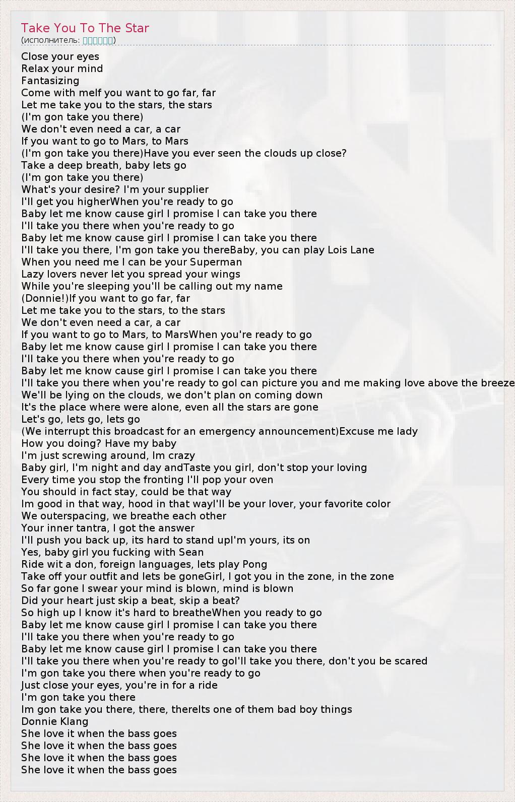 А как ты думаешь, о чем песня "Take You To The Star" ?