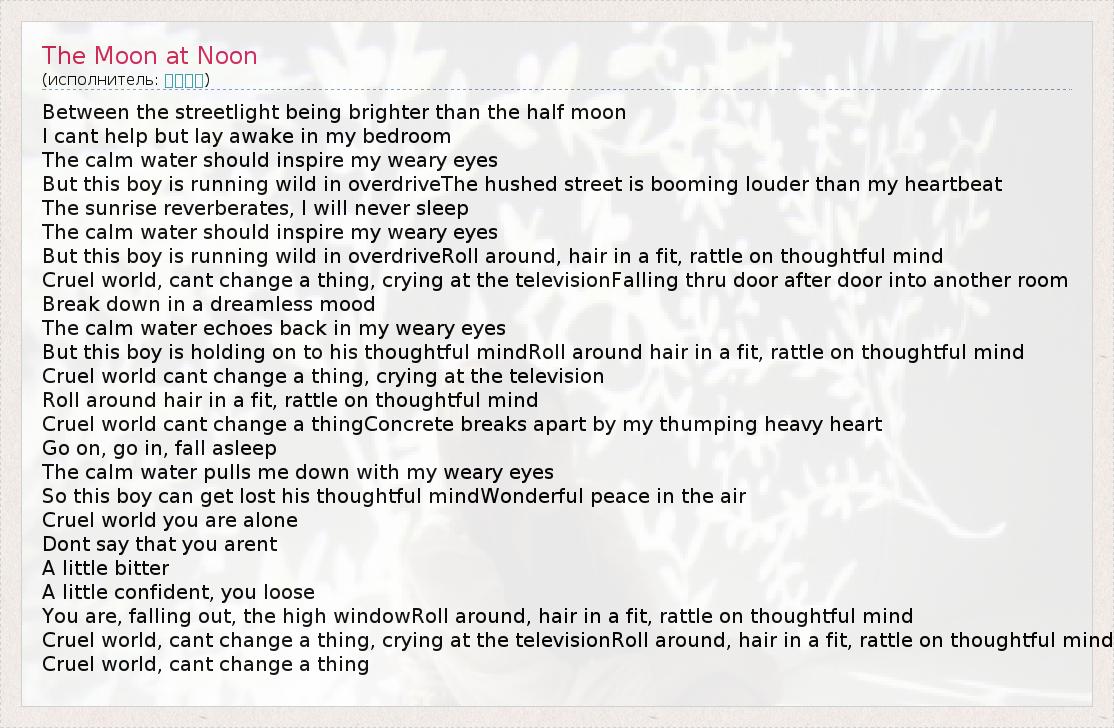 А как ты думаешь, о чем песня "The Moon at Noon" ?