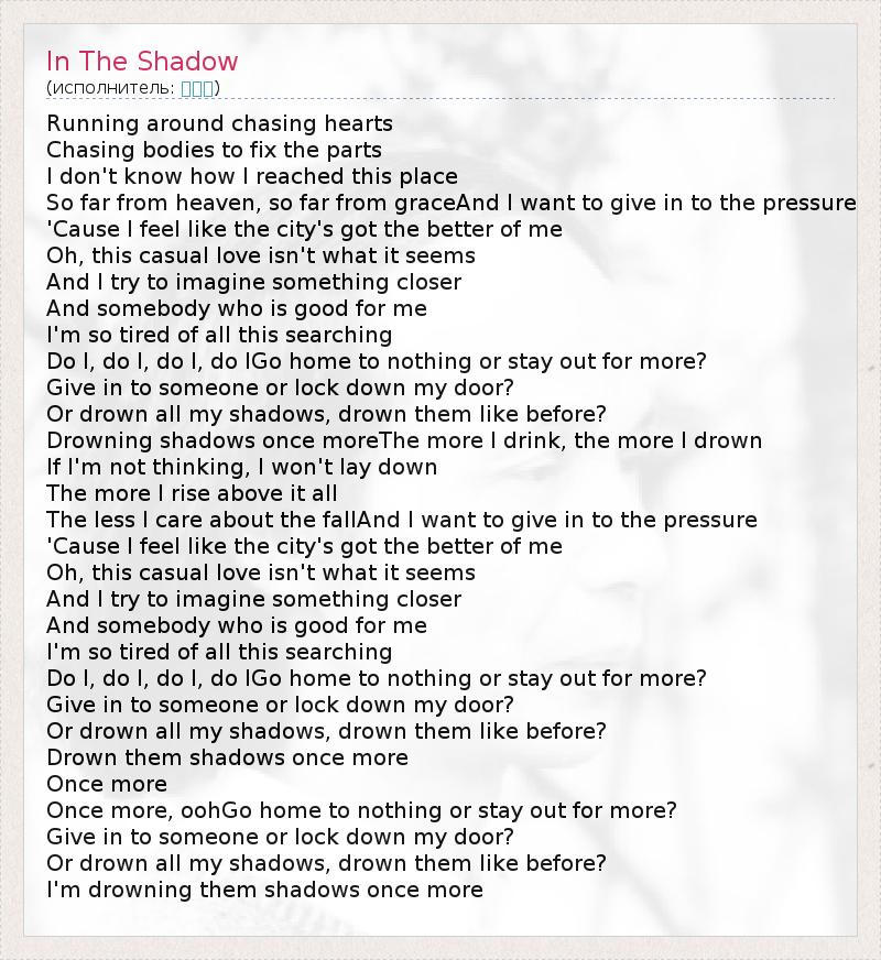 А как ты думаешь, о чем песня "In The Shadow" ?