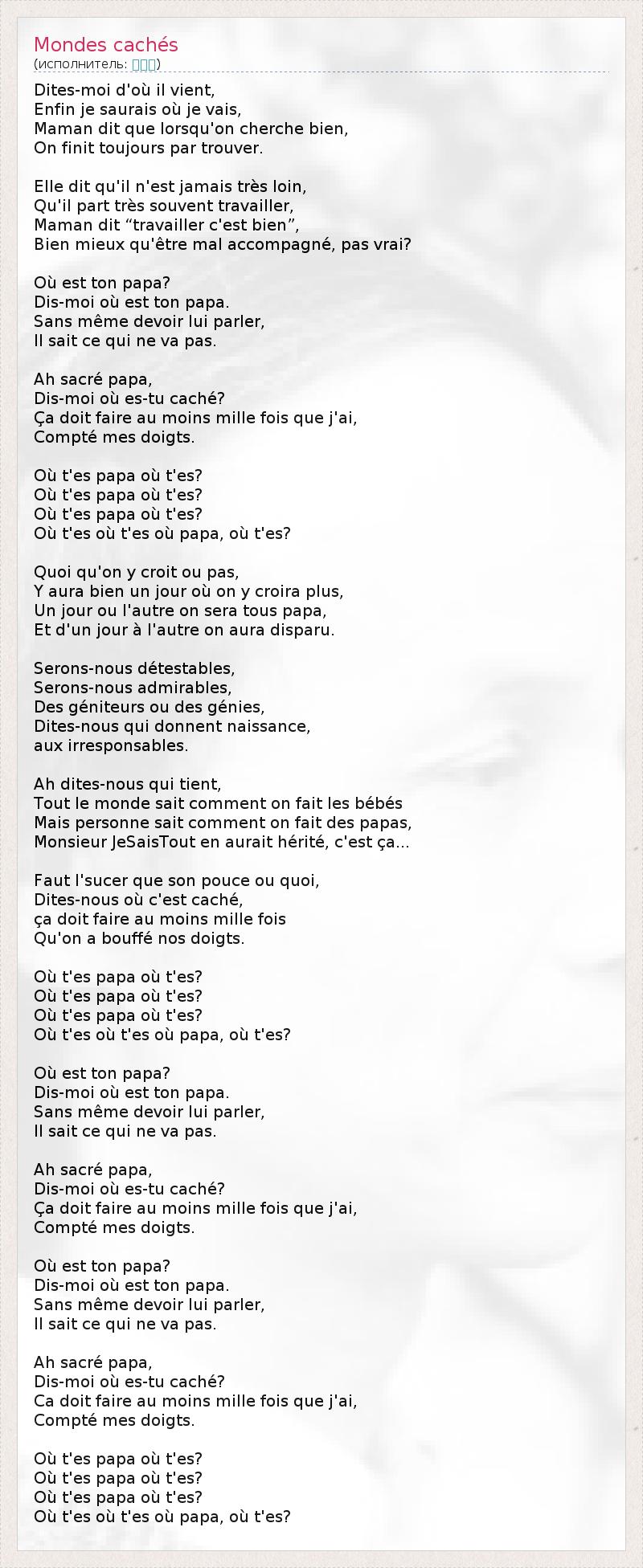 А как ты думаешь, о чем песня "Mondes cachés" ?