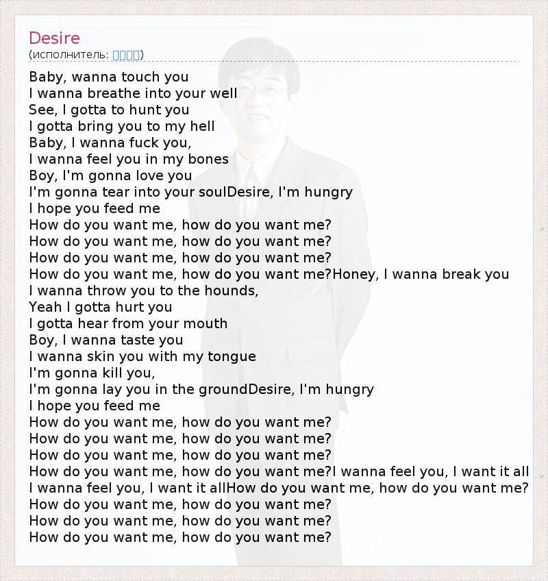 How do you want me, how do you want me?I wanna feel you, I want it all