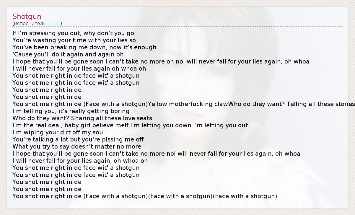 You shot me right in de (Face with a shotgun)(Face with a shotgun)(Face with a shotgun)
