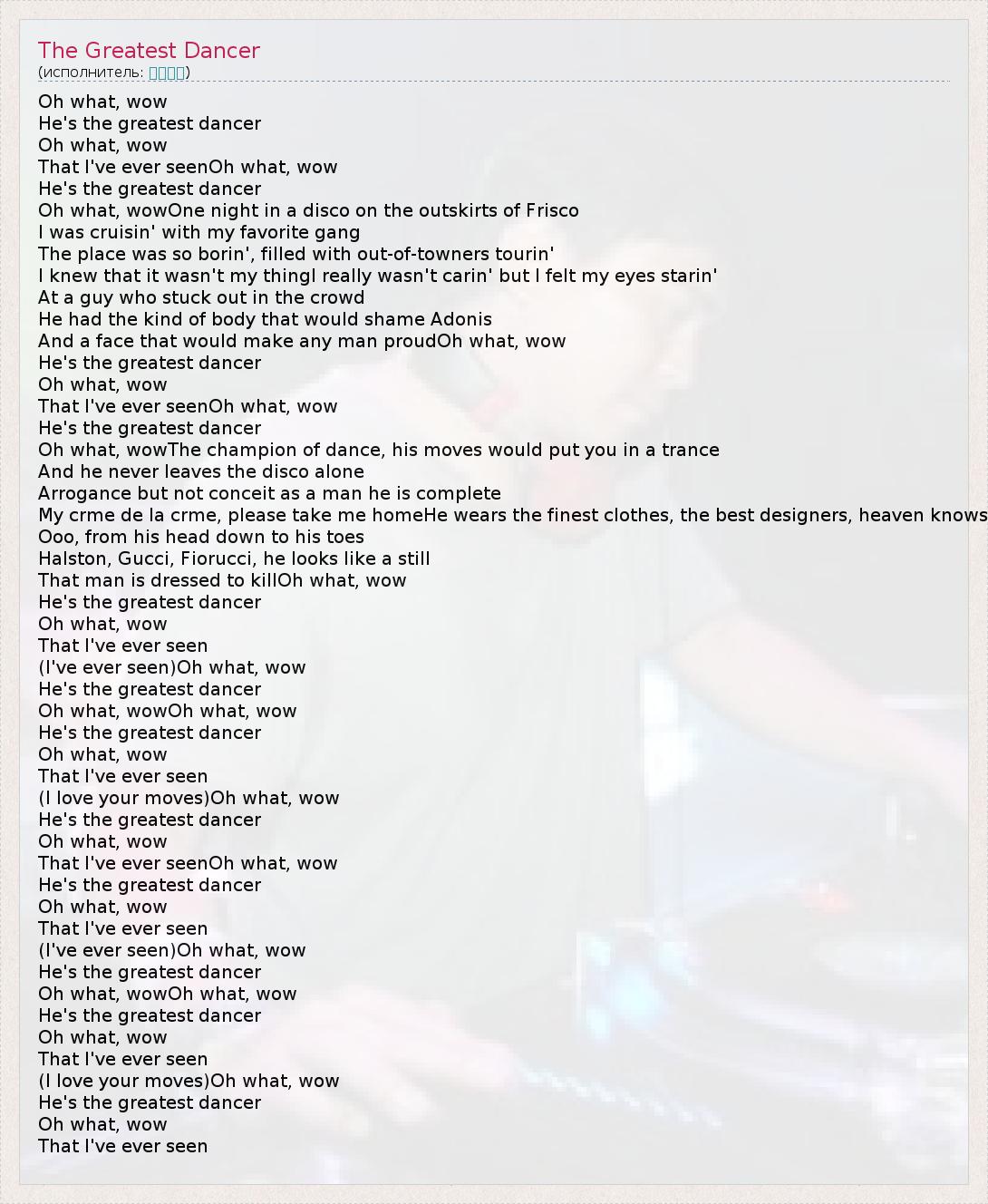 А как ты думаешь, о чем песня "The Greatest Dancer" ?