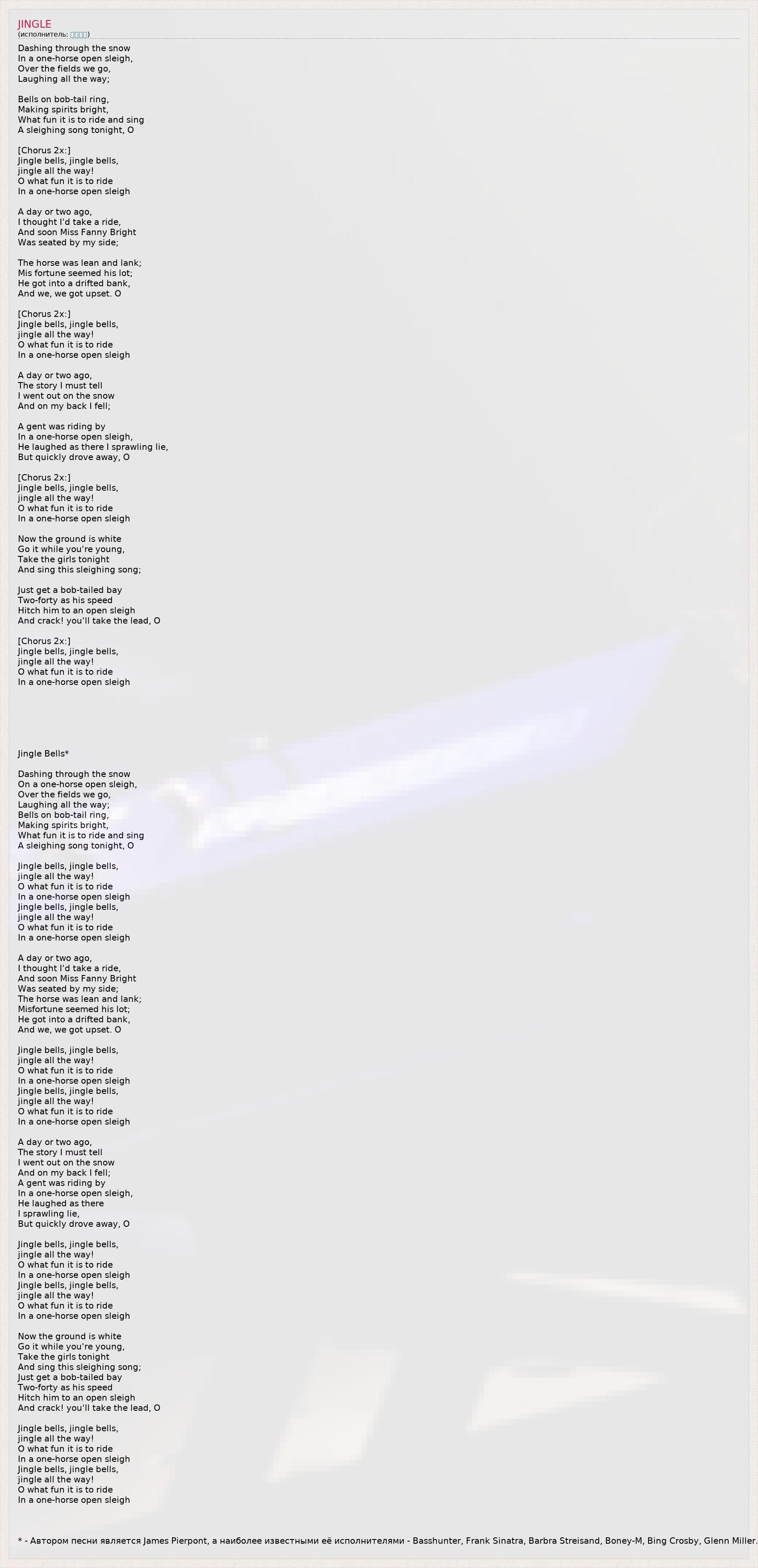 * - Автором песни является James Pierpont, а наиболее известными её исполнителями - Basshunter, Frank Sinatra, Barbra Streisand, Boney-M, Bing Crosby, Glenn Miller.