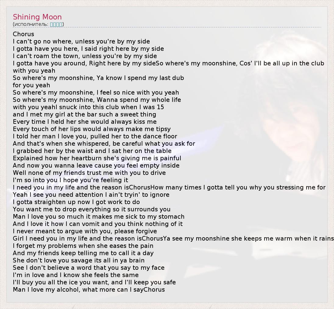 А как ты думаешь, о чем песня "Shining Moon" ?