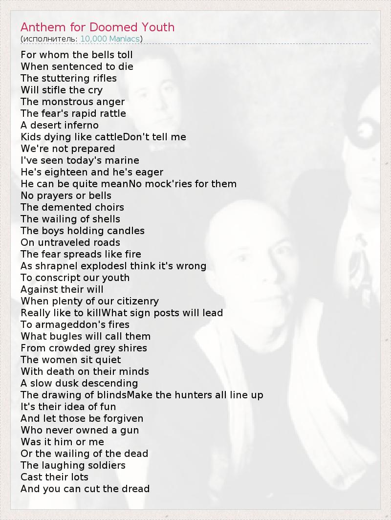 А как ты думаешь, о чем песня "Anthem for Doomed Youth" ?