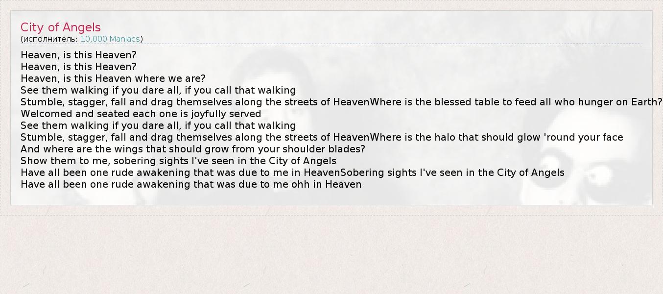 А как ты думаешь, о чем песня "City of Angels" ?