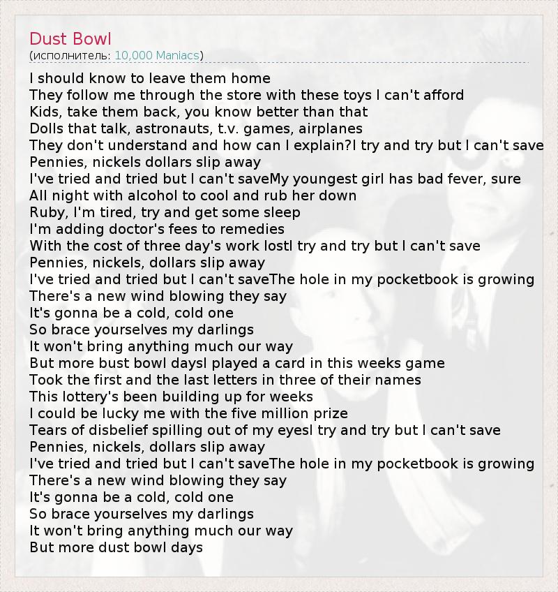 А как ты думаешь, о чем песня "Dust Bowl" ?
