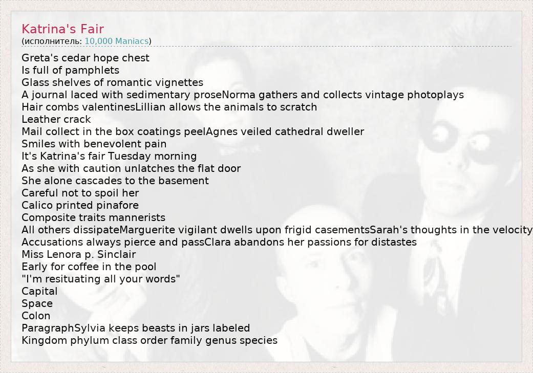 А как ты думаешь, о чем песня "Katrina's Fair" ?