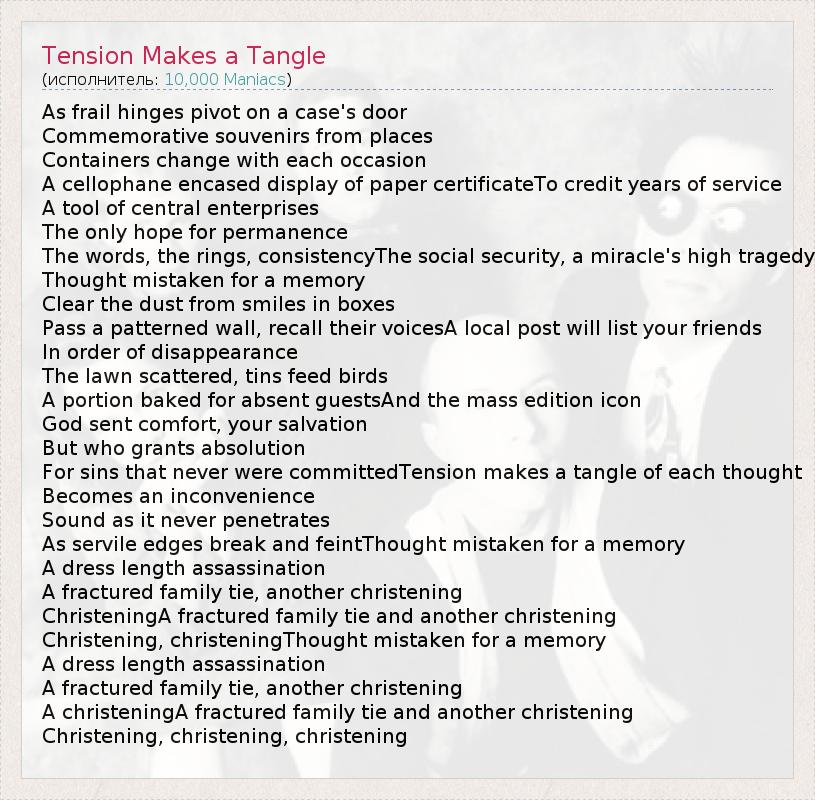 А как ты думаешь, о чем песня "Tension Makes a Tangle" ?