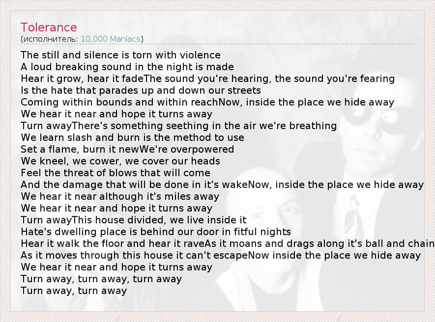 А как ты думаешь, о чем песня "Tolerance" ?