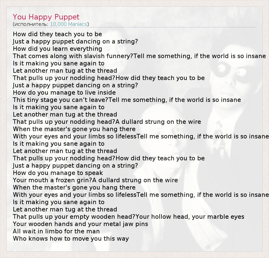 А как ты думаешь, о чем песня "You Happy Puppet" ?