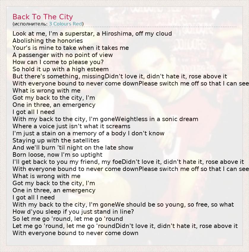 А как ты думаешь, о чем песня "Back To The City" ?