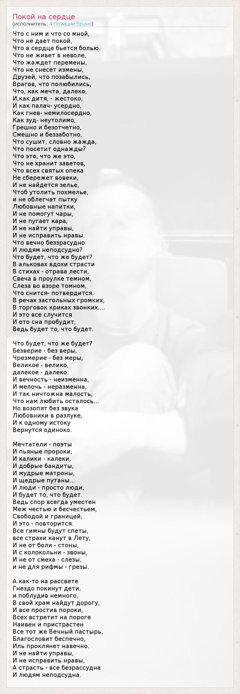 А как ты думаешь, о чем песня "Покой на сердце" ?