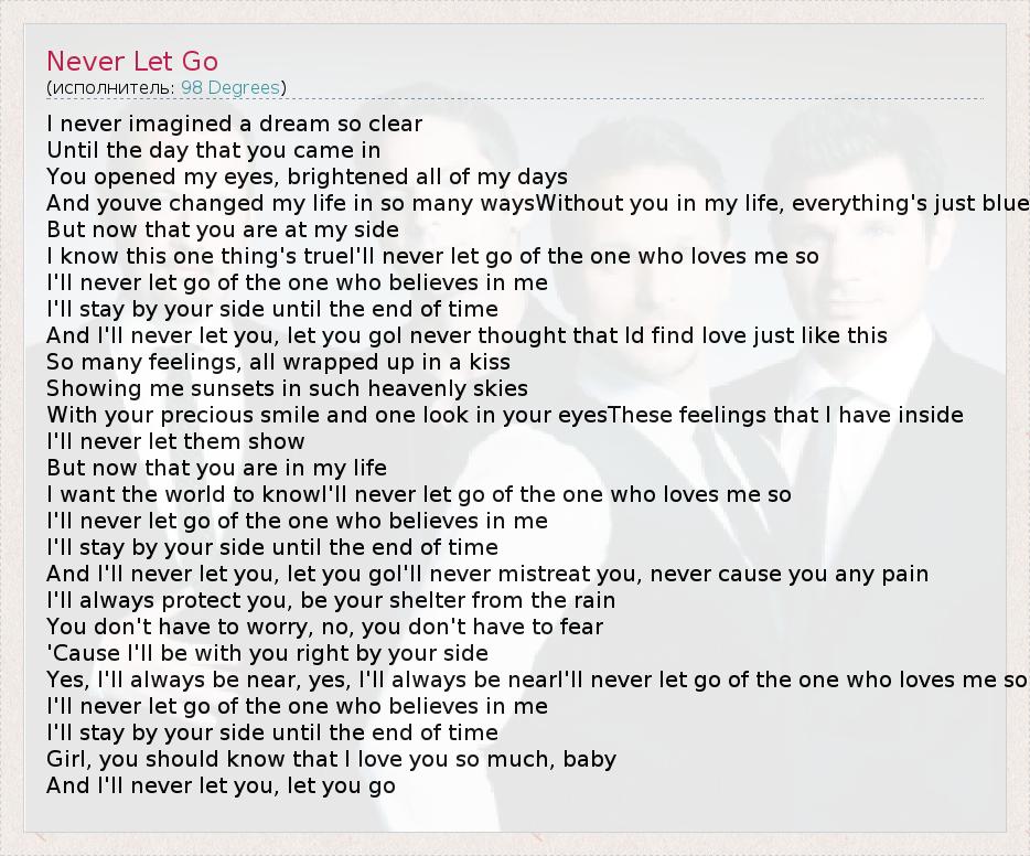 А как ты думаешь, о чем песня "Never Let Go" ?