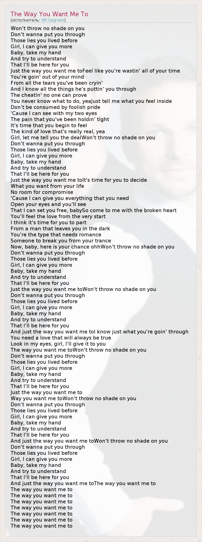 ГлавнаяИсполнители98 DegreesThe Way You Want Me To