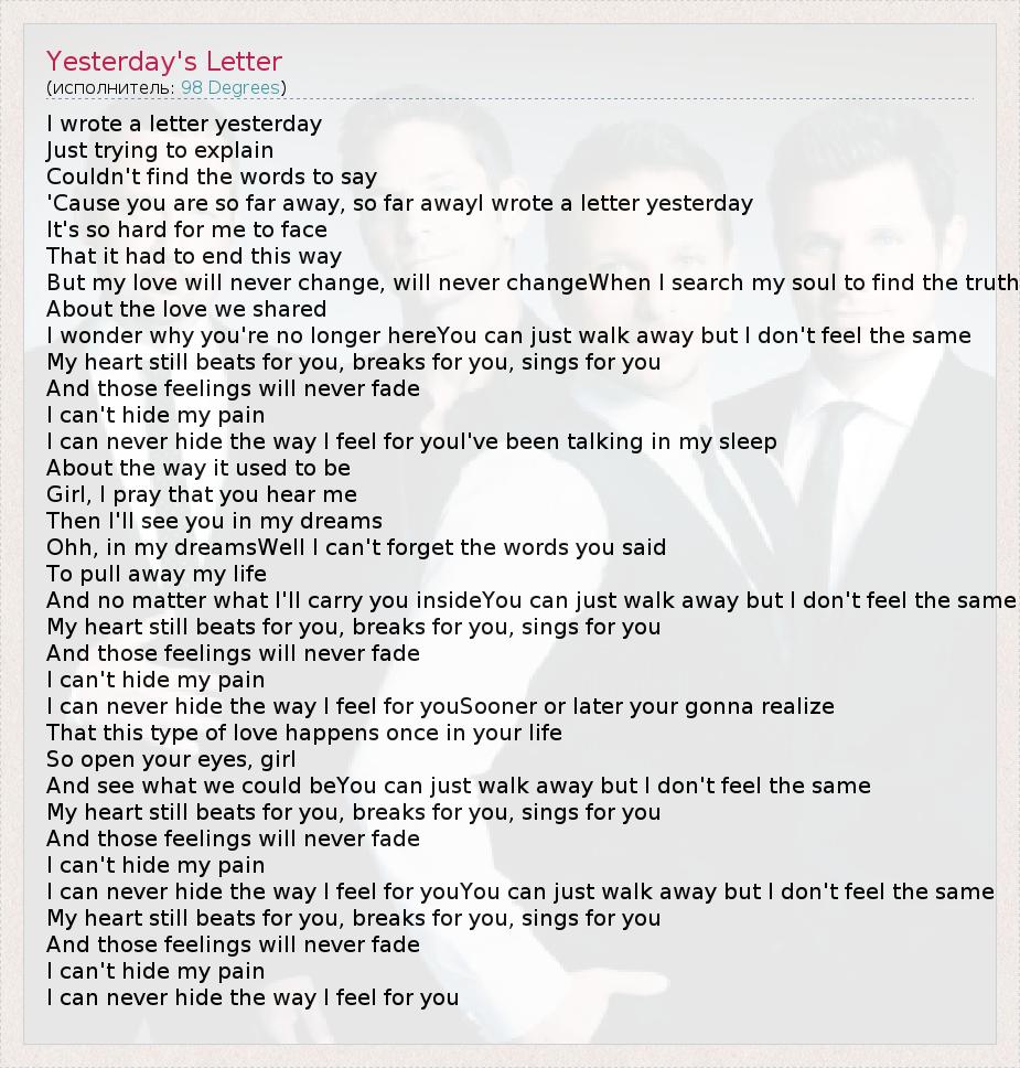 А как ты думаешь, о чем песня "Yesterday's Letter" ?