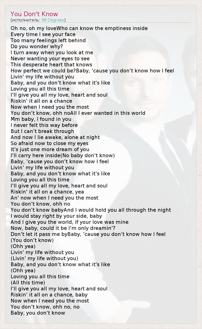 А как ты думаешь, о чем песня "You Don't Know" ?