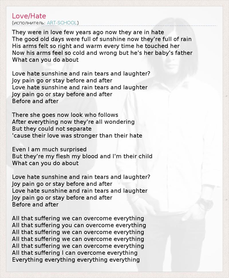 А как ты думаешь, о чем песня "Love/Hate" ?