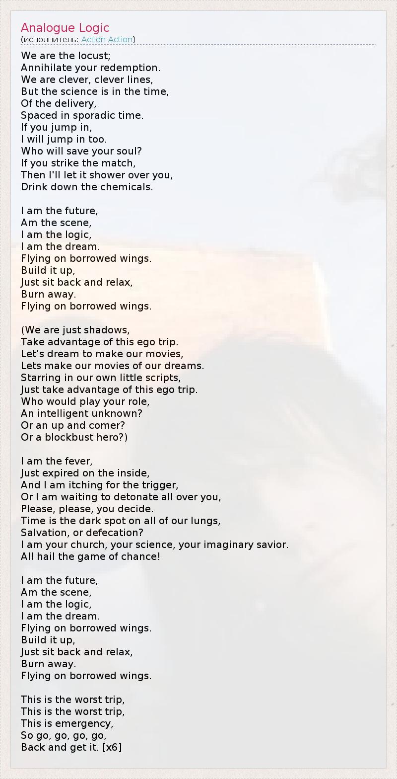 А как ты думаешь, о чем песня "Analogue Logic" ?