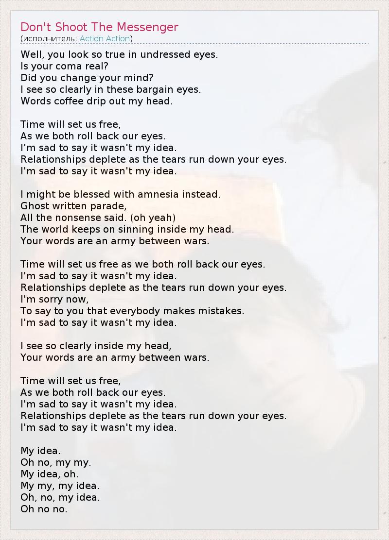 А как ты думаешь, о чем песня "Don't Shoot The Messenger" ?