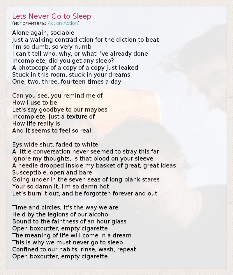 А как ты думаешь, о чем песня "Lets Never Go to Sleep" ?