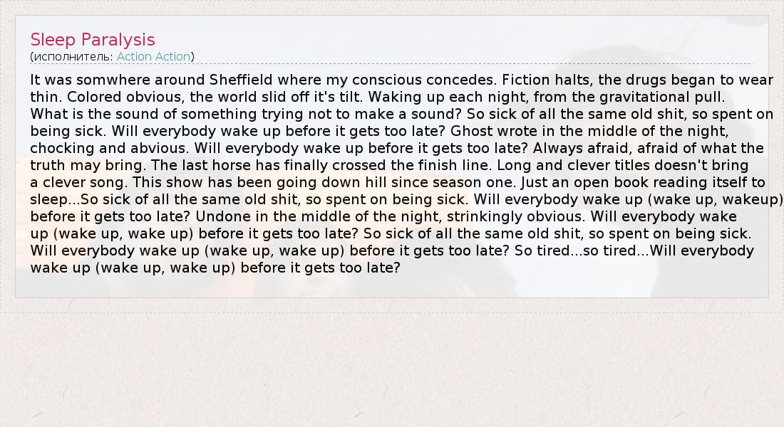 А как ты думаешь, о чем песня "Sleep Paralysis" ?