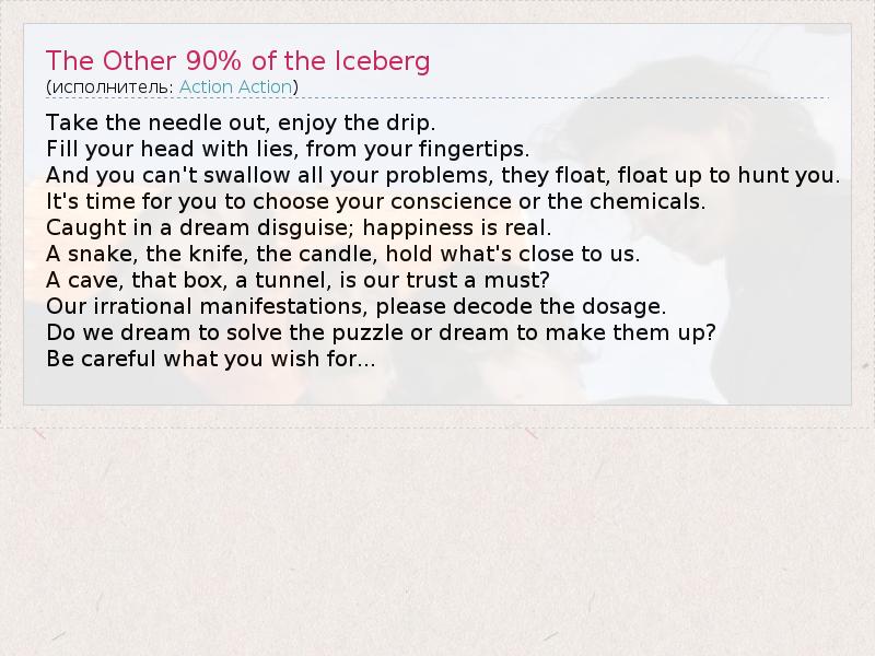 А как ты думаешь, о чем песня "The Other 90% of the Iceberg" ?