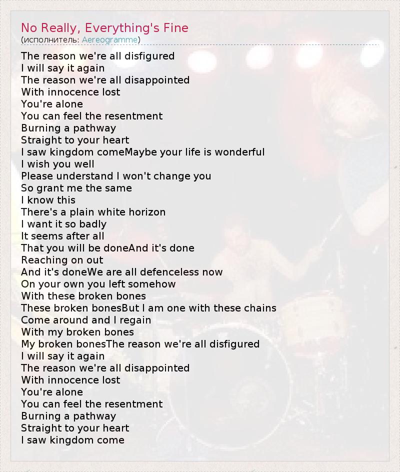 А как ты думаешь, о чем песня "No Really, Everything's Fine" ?