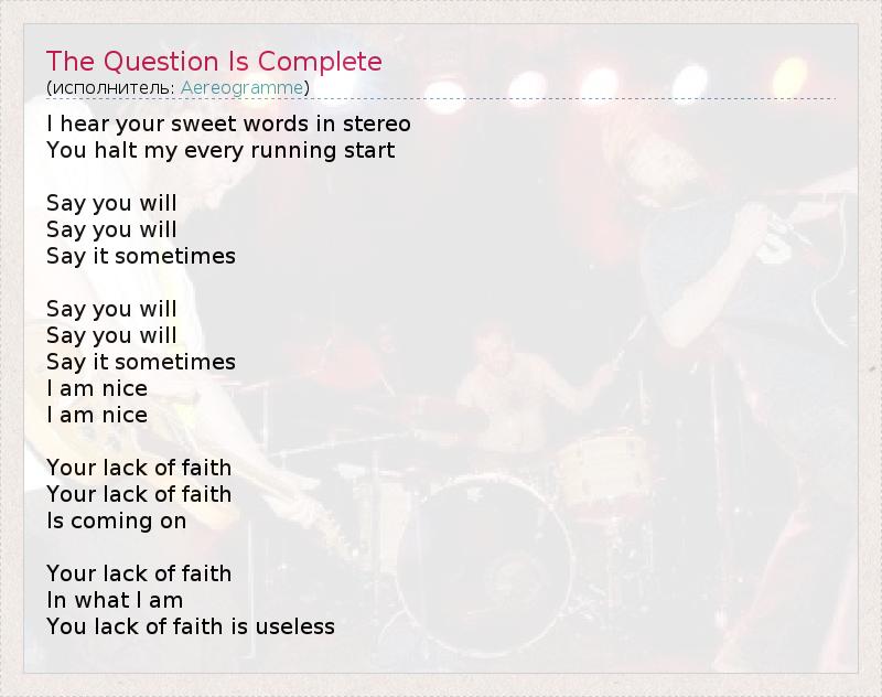 А как ты думаешь, о чем песня "The Question Is Complete" ?