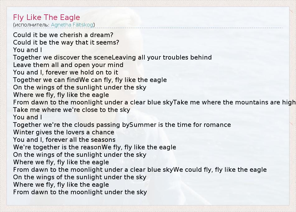 А как ты думаешь, о чем песня "Fly Like The Eagle" ?