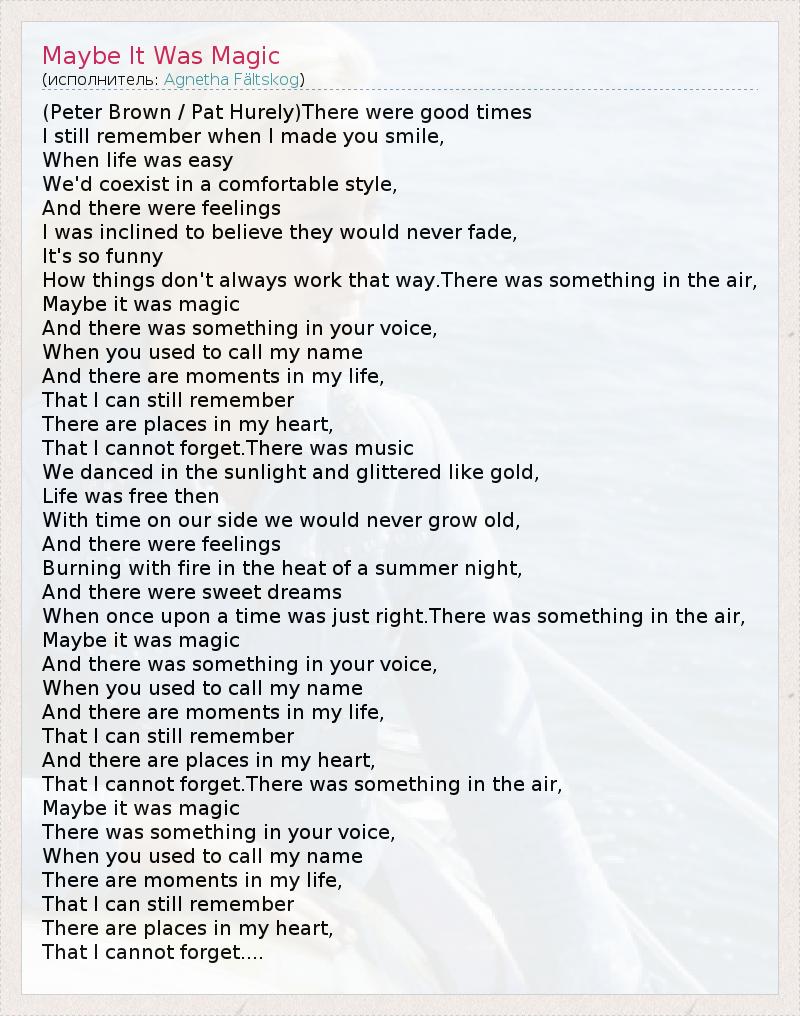А как ты думаешь, о чем песня "Maybe It Was Magic" ?