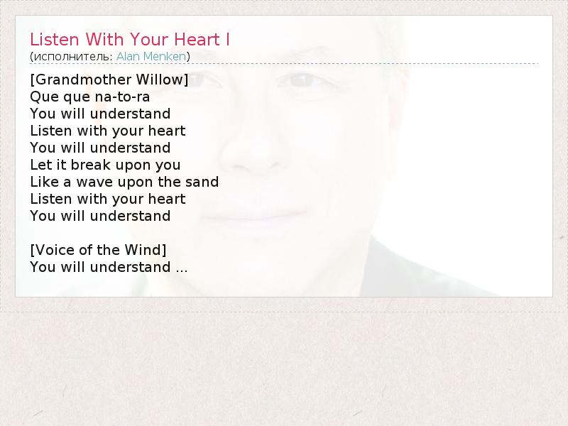 А как ты думаешь, о чем песня "Listen With Your Heart I" ?