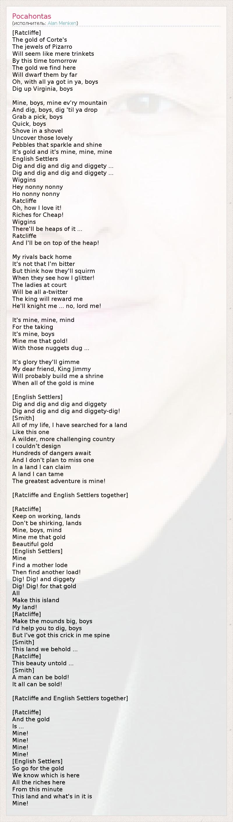 А как ты думаешь, о чем песня "Pocahontas" ?