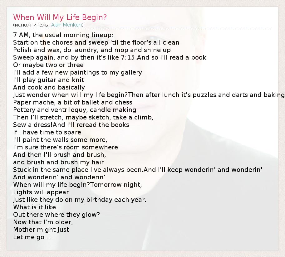 А как ты думаешь, о чем песня "When Will My Life Begin?" ?