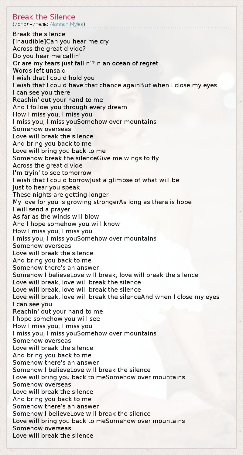 А как ты думаешь, о чем песня "Break the Silence" ?